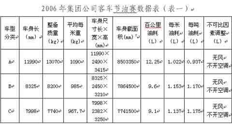 下面根据我集团公司历年来所举办的汽车(客车)驾驶节油赛的情况(各种数据)为依据,对汽车的风阻与节油,汽车的自重与节油进行分析探讨。作为第三个因素驾驶员的操作,我们将另文论述。