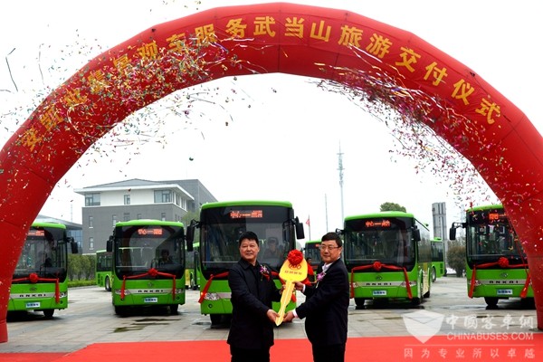 活动现场,在安凯客车和武当山旅游股份有限公司双方领导的见证下,安凯为武当山景区倾心研发的47台新一代10.5米窄体公交车批量交付武当山旅游公司。作为中国旅游客车领域的佼佼者,今后,安凯“五星级”客车将为武当山游客带来全新的价值体验与通勤享受,在提升景区文化品味的同时,还将为景区带来一抹靓丽风景!