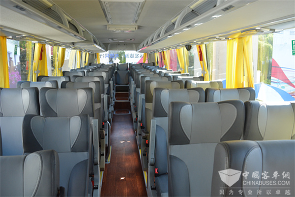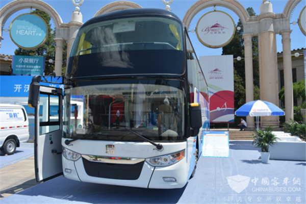 本次道路运输车辆展展出的LCK6119HQ一层半的大巴是专门针对旅游客运市场,以安全、时尚、休闲、节能为主调打造的客车新帅,便捷舒适,配备多功能主机一体机,车载WIFI,国内首家借鉴轿车仪表智能感光技术。无论外形、内饰、动力还是操控均领先国内同类产品。