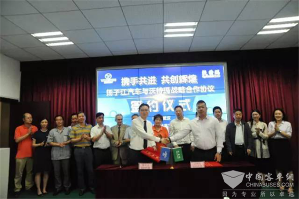 根据协议,沃特玛创新联盟与扬子江汽车集团客车将在技术、产品、市场推广等三个领域和层面展开合作。签约仪式上,双方简单介绍了各自的发展经营概况和主营业务。