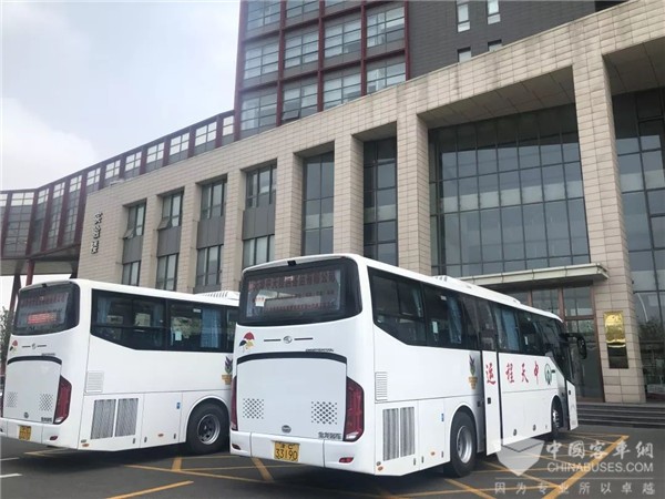 交流会期间,日前交付天津中天程运客运有限公司(以下简称“中天程运”)的金龙客车XMQ6112投入本次接待服务。
