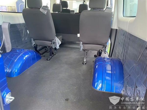 本款车型采用2+2+2的六座布局形式,前排主、副驾驶位座椅及后部乘员座椅均采用织物面料包裹。最后一排座椅可以折叠并向前放倒,方便车辆装载行李货物。