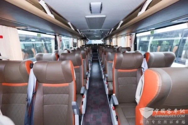 BJ6126系列城间客车外观造型端庄大气,线条流畅典雅,车内空间宽敞明亮,采用2+2座椅布局,乘客区配备符合人体工学的双密度海绵座椅,有效缓解长途乘坐疲劳。同时,车辆还搭载USB充电接口、车内氛围灯等人性化配置,让每一位游客都能轻装出发,畅游黔山秀水。此外,车辆贯通式行李舱与车内行李架,为旅客提供充裕的行李存放空间,尤其适合旅游团队及通勤旅客需求,让旅途更加轻松有序。