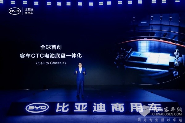 经过三年潜心研发,比亚迪为行业带来了全球首创客车电池底盘一体化技术(CTC),这项技术将电池与底盘深度融合,既提升了结构强度,又增加了电池防护能力。