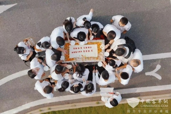 香气四溢的蛋糕上描绘着公司员工对中车诚挚的祝愿,寓意着共同奋斗、共同发展、共享成果的美好希冀。