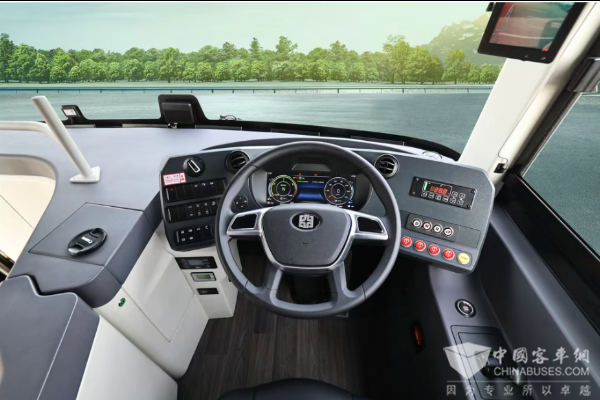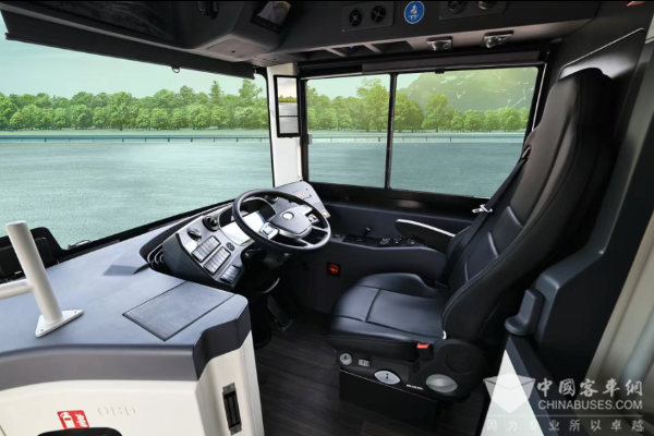 驾驶员座椅采用全气囊减震司机椅,右侧设有折叠扶手,带有离座报警及安全带未系报警功能。此外,中通N12D(欧洲版)还匹配电子后视镜、360智能环视、车道偏离预警、行车及骑乘碰撞预警、前碰撞预警、疲劳驾驶预警等丰富的智能系统,有效降低突发事故发生率。