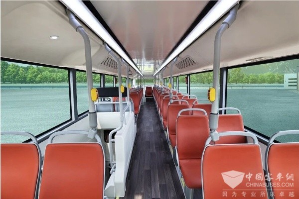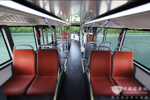 乘客区侧面及顶部均采用白色内饰,配合大尺寸玻璃窗以及贯穿前后的顶灯,令车内十分明亮。车内扶手十分齐全,保证乘客不管身处哪个位置都能抓握。