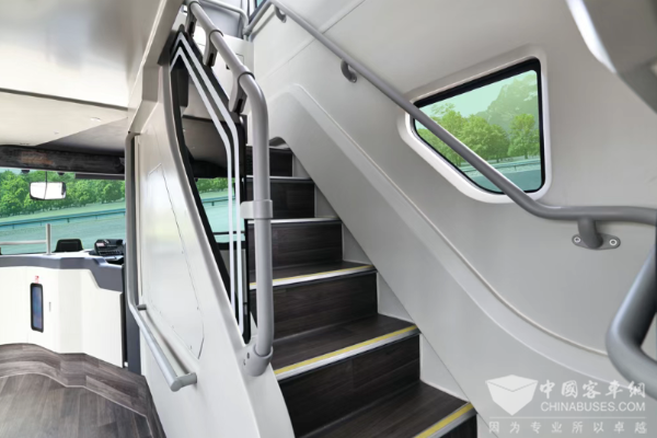 同时,中通N12D(欧洲版)的上下客便利性设计值得称道,配备前、中、后3个乘客门与前后双楼梯,结合下层低地板设计,通道内无台阶,确保乘客快上快下,切实缩短停靠时间。此外,车辆搭载“一拖八”客车中央空调系统,通过多区域变频制冷,精准控制不同区域温度,做到全场景舒适保障。