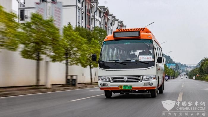 也因为这批新车的投放,大大提升了乘客、司机的幸福感,“乘客反映很好,说我们的车新、干净卫生。”开着金旅车、经常跑村里的司机蒋新祥说道,而且换为新能源客车后,司机的驾驶强度也大幅降低。另外一位司机倪明亮则开着金旅车,往返于沉水村与新宁县城之间,这条长达38公里、共设置11个站点的客货邮线路既把老百姓安全送达家门口,也把新宁的脐橙送往了更广阔的市场。