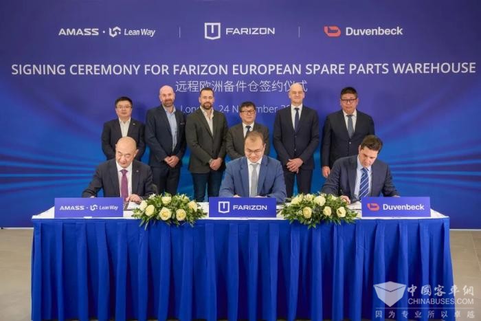 2025年11月24日,远程新能源商用车集团、Duvenbeck与美设国际集团旗下上海赞珀领荟国际物流有限公司(Amass Leanway)在伦敦正式签署合作协议,旨在欧洲物流业务合作共赢。根据合作协议,三方将共同在欧洲成立远程新能源商用车首个海外备件仓,共同推动远程在欧洲市场的持续发展。