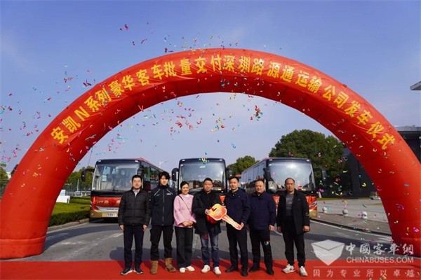 2025年12月3日,一批全新的安凯N12E新能源客车正式交付深圳市路源通运输有限公司(以下简称“路源通”)。此次交付不仅助力深圳本土客运企业在高端绿色车队建设上迈出坚实一步,也为深圳市民的日常通勤与旅游出行带来了更环保、更舒适的新选择。
