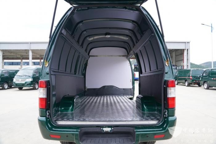 作为精准匹配邮政快递运营需求的核心车型,龙运 GLE850是金旅专为城配物流场景打造的明星产品。该车型体型小巧灵动,通过性尤为突出,高顶版车身高 2260mm、宽 1700mm,可在市区狭窄街巷灵活穿梭;同时兼具“外小内大” 的空间优势,高顶版货厢容积达8.2m³,内部长3.2m、高 1.65m,人员可直立开展装卸作业,侧移门、后掀背门及双开门的多元设计,能完美适配商超多点配送等复杂城配场景。在载重与耐用性方面,车型配备5片钢板弹簧后悬架及 195/70R15载重轮胎,货厢采用 1.2mm 加厚钢板材质,既能充分满足邮政物流的实际载重需求,又能有效延长车辆使用寿命,降低长期运营损耗。