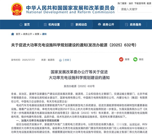 2025年7月7日,国家发展改革委办公厅、国家能源局综合司、工业和信息化部办公厅、交通运输部办公厅联合发布《关于促进大功率充电设施科学规划建设的通知》,将对重大节假日期间利用率超过40%的充电设施实施大功率改造,到2027年底,力争全国范围内大功率充电设施超过10万台,服务品质和技术应用实现迭代升级;积极布局公交、物流、中重型货运等专用大功率充电设施;面向电动重卡、电动船舶、电动飞机等大容量、高倍率动力电池应用场景,开展单枪兆瓦级充电技术研究与试点应用。