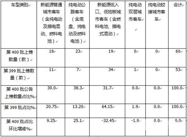 - 第400批新能源客车:上榜60款! 纯电动公路车型领涨领跑