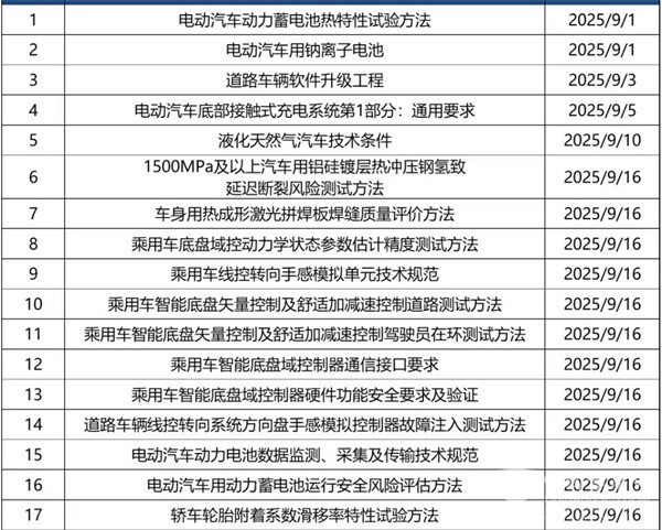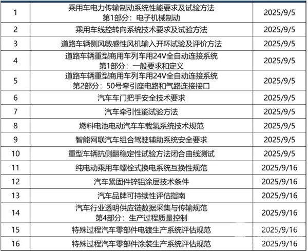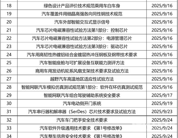 对此,笔者根据慧眼看车等对2025年9月相关汽车行业标准法规汇总进行归纳汇总,并进行了扼要分析,供行业参考!