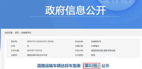 截图1,交通部道路运输车辆达标车型表(第82批公示):