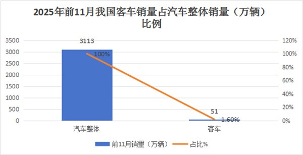 例如2025年前11月,根据中汽协数据,我国汽车整体销量为3113万辆,而2025年前11月我国客车只有51万辆的销量,客车在我国整体汽车行业的占比只有1.6%,这种较小的体量使其发展易受政策倾斜或忽视的影响,企业往往需依赖政策引导来获取资源与机会。