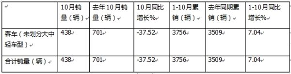 由于比亚迪产销快报未将客车销量按大中轻车型进行具体分类,因此未知其今年10月及1-10月大中轻客车各细分市场具体销量及同比增长情况。总之,比亚迪客车今年10月销量同比下降37.52%,前10月累计销量同比增长7.04%。