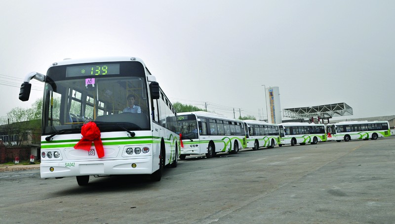 20日下午,37台全新的高等级环保公交车在长沙的104、139、136、101路公交线路上运营。乘坐这些车辆出行的市民将完全看不到令人反感的公交“黑尾巴”。这是长沙今年获批节能与新能源汽车示范推广试点城市以来,最大规模一批欧Ⅲ排放标准的公交车投入运营。