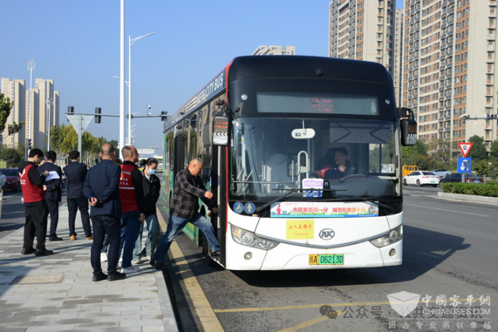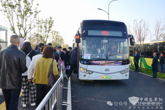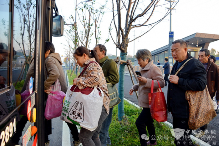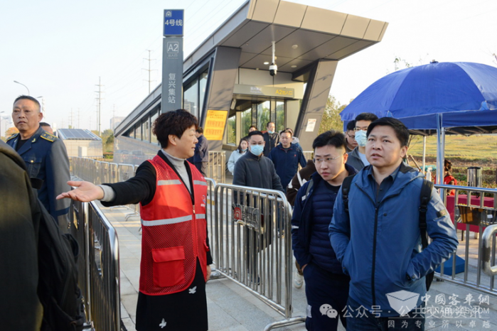 又一批轨道乘客在复兴集站换乘公交接驳专线继续前行。