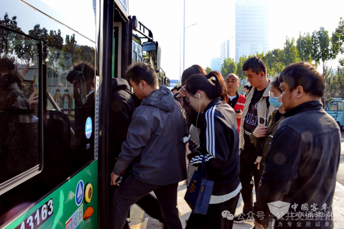 一批批乘客乘坐公交接驳专线顺利离开复兴集地铁站