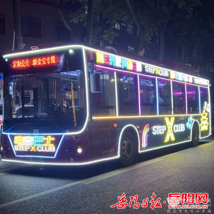 据介绍,流光溢彩的电音巴士,线路自湖南民族职业学院始发,一路行至历史文化地标岳阳楼,沿路停靠各站点。目前暂定每日19:00至22:00往返运行。乘客可在沿途公交站点招手即停,以9.9元亲民票价即可上车体验,并获赠啤酒一瓶。车内配备专业音响设备,由DJ现场打碟、MC激情喊麦,配以精彩舞蹈表演,打造出一个充满活力的“移动音乐空间”。