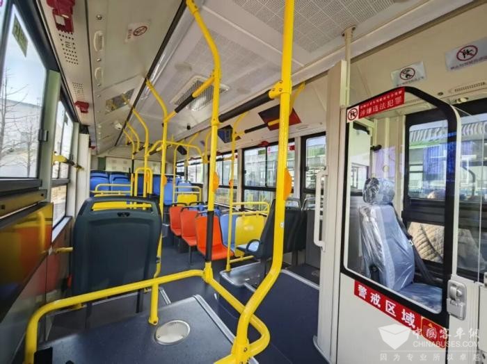 新亮相的新能源公交车,在车辆设计上,采用低入口设计,更好地方便老年乘客上下车;配置人体工程学皮革软垫座椅,标配空调系统,乘坐更舒适。