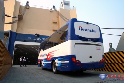 本次141台豪华客车中有131台是交付给古巴最大的客运公司,从7月份双方签订合同时,双方约定10月30号车辆装船出海。但大金龙却提前40天完成了141台客车的生产,并顺利通过了古巴客户的现场检验、试车及出境商检、报关等程序,于9月21号进行装船。