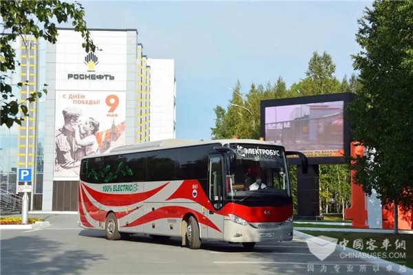 在俄罗斯下瓦尔托夫斯克市内的街道上,一辆来自中国的高端豪华纯电动客车穿梭而过,它行驶平稳,节能环保,时尚大气,引得行人纷纷投来“注目礼”。