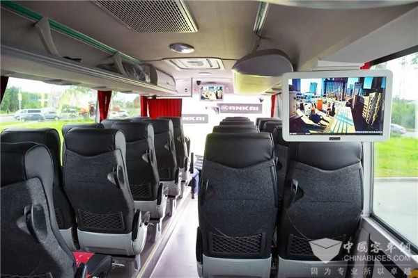 除此之外,安凯A8时尚大气的外观和高端豪华的设计也备受司乘人员青睐。整体式仪表操作台,操控按钮布局合理,触手可及。同时A8还采用安凯独有的内环境管理系统,充分保证车内空气纯净、新鲜,车内设施更是遵从人体工程学设计,从细微之处入手,为乘客打造一个贴心舒适的乘车环境。