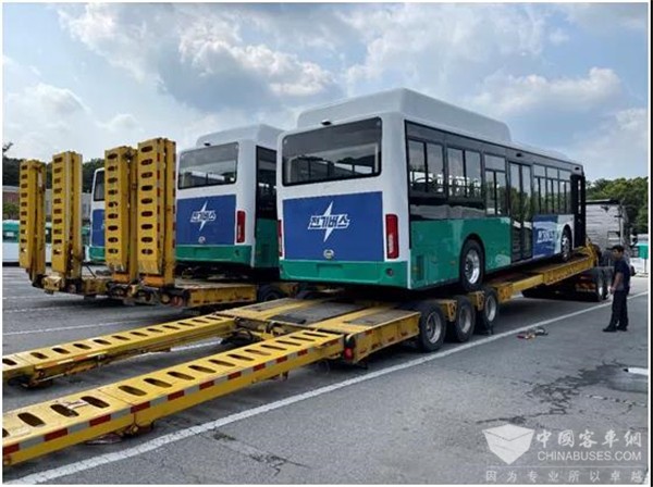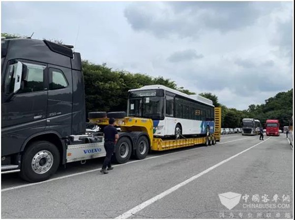 在三个月的试运营中,这两台样车的表现受到大家的一致好评。获得肯定后,金龙客车上下备受鼓舞,全力以赴完成剩余43辆车的生产。为更好地完成这批订单,2021年3月,金龙销售人员冒着海外疫情的风险,前往韩国,拜访客户,进行市场调研,收集使用反馈,给合作伙伴及客户带去了信心。根据客户需求,43辆订单车分为4批发运,陆续抵达韩国,持续为韩国民众绿色公共出行贡献“中国智慧”。