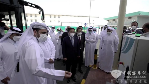 中国驻卡塔尔大使周剑、卡塔尔交通通讯大臣贾西姆·苏莱、卡塔尔公共工程署署长兼公共交通运输公司主席穆罕纳德、交付与遗产最高委员会秘书长哈桑、国家运输公司首席执行官法赫德·卡赫塔尼、水电总公司(Kahramaa)总裁库瓦里,宇通海外营销体系副总监彭旭,以及多名当地官员和私营企业代表出席了启用仪式,共同见证了这一历史性时刻。