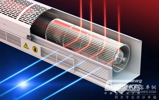 乘客门选用一体气囊式防夹,保障乘客登乘安全,乘客门上方加装大流量风机气帘,开门自动启动,减少夏冬季节由于车门开启造成的温差流失,最大程度降低车辆能耗,节能环保。