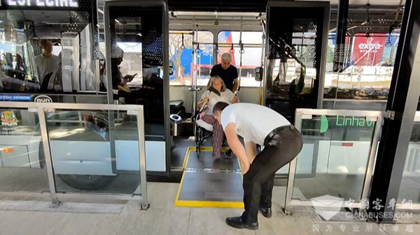 此外,大巴车内的空调还统一安装了用于空气消毒的UV-C系统,座椅和扶手均有抗菌涂层,可最大限度阻断传染性疾病的传播;车辆还设置了方便残障人士上下车的无障碍设施,并为每个座位贴心地配备了USB充电口。