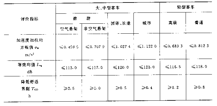 各类客车的试验车速均为50km/h。测点均为左侧最接近后桥正上方处的座椅。