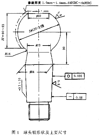 5.4 球头销球面部(图1中H范围内)应进行渗碳,渗碳层深度为1.0mm~1.4mm,其表面硬度为58HRC~64HRC,杆部(除硬度转变区外)表面硬度为23HRC~43HRC。