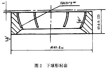 上球形衬套主要尺寸图1所示,下球形衬套主要尺寸见图2。