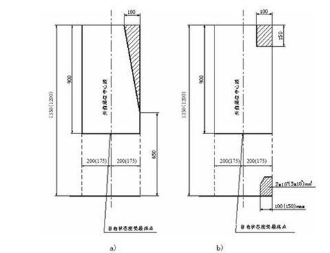 c) 外侧座椅的椅脚靠近侧围处,横截面积不超过2×104mm2(低地板客车3×104mm2)、最大宽度不超过100mm(低地板客车150mm)的区域(见图6 b))。