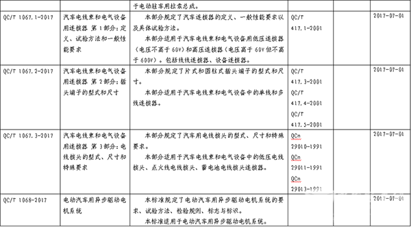 《电动汽车用异步驱动电机系统》规定了电动汽车用异步驱动电机系统的要求、试验方法、检验规则、标志与标识。《电动汽车用永磁同步驱动电机系统》规定了电动汽车用永磁同步驱动电机系统的技术要求、试验方法、检验规则、标志与标识。