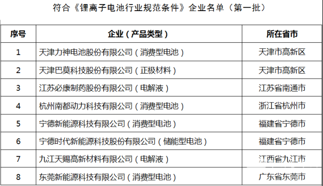 工信部拟公告第二批符合《锂离子电池行业规范条件》企业