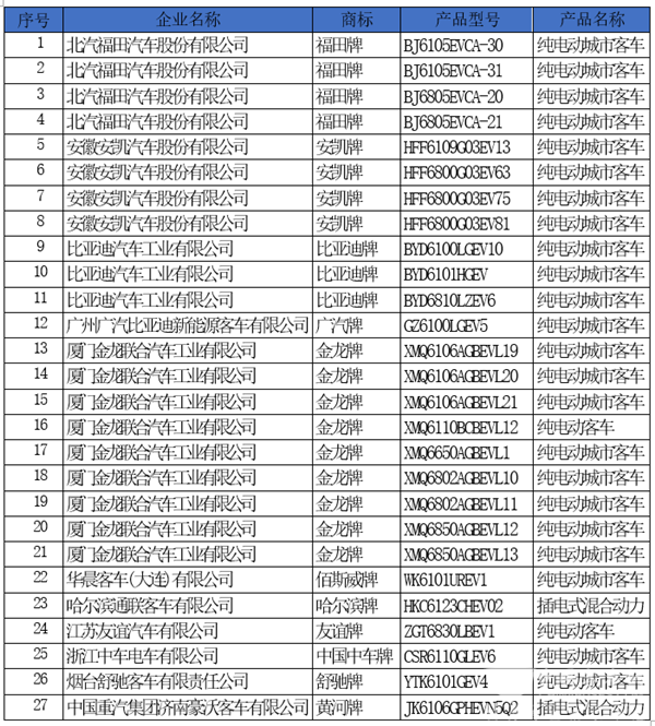 第二批新能源汽车推荐目录公布,金龙领衔27款客车进入