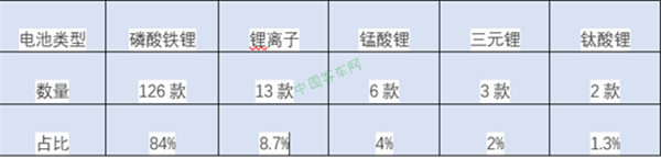 从电池类型看,在150款新能源客车产品中,磷酸铁锂电池依然是主流,其中126款搭载磷酸铁锂电池,占比84%。另外,有13款客车搭载锂离子电池,2款银隆客车搭载钛酸锂电池,6款产品搭载锰酸锂电池,3款轻型客车(含一款底盘产品)搭载三元锂电池。