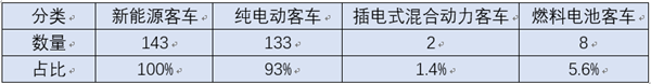 2018年9月5日,工业和信息化部发布了《新能源汽车推广应用推荐车型目录》(2018年第9批)。本批推荐目录共包括143款新能源客车(包含16款变更扩展车型),其中纯电动客车133款,占新能源客车总量的 93%,插电式混合动力客车2款,占比 1.4%,燃料电池客车8款,占比5.6%。