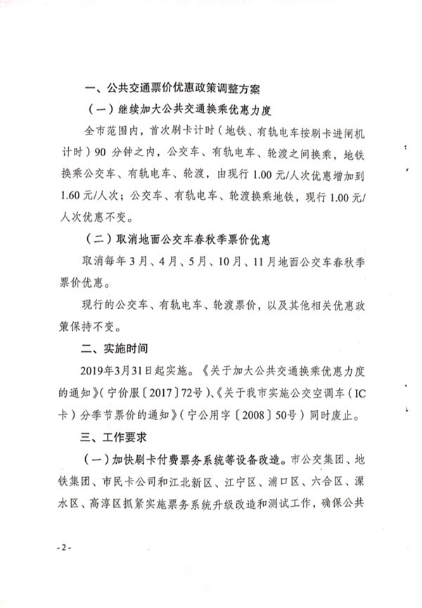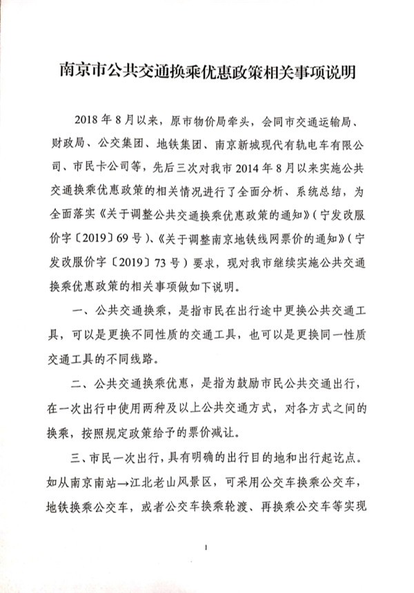 南京发改委发布关于调整公共交通换乘优惠政策的通知