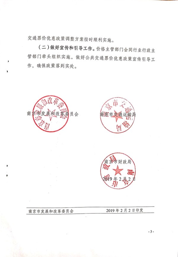南京发改委宣布,将于2019年3月31日起实施关于《加大公共交通换乘优惠力度的通知》,该通知将继续加大公共交通优惠换乘力度并取消地面公交车春秋季票价优惠。