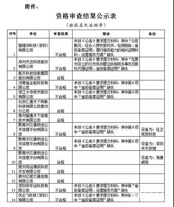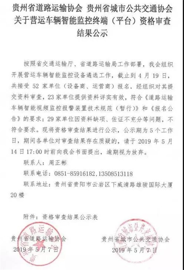 超过一半单位不符合!贵州省营运车辆智能监控终端资格审查结果公示