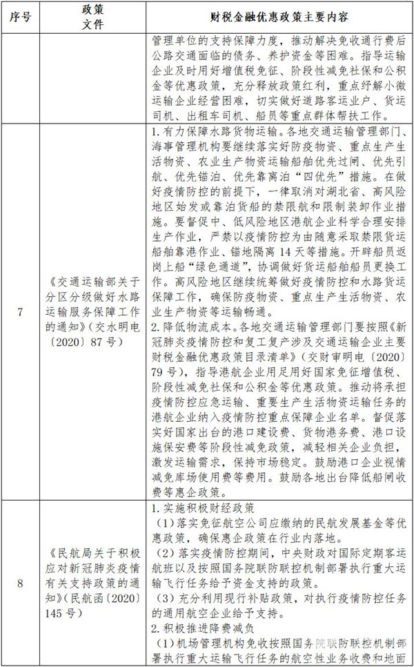 附:新冠肺炎疫情防控和复工复产涉及交通运输企业主要财税金融优惠政策目录清单(第三期)