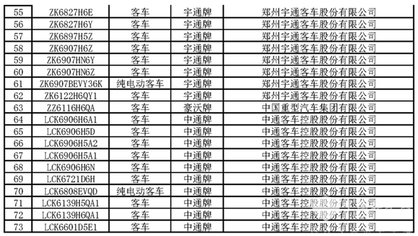 值得一提的是,本批达标的客车车型中包含8款纯电动客车,其中宇通客车有6款,中通客车和福田欧辉客车各1款。