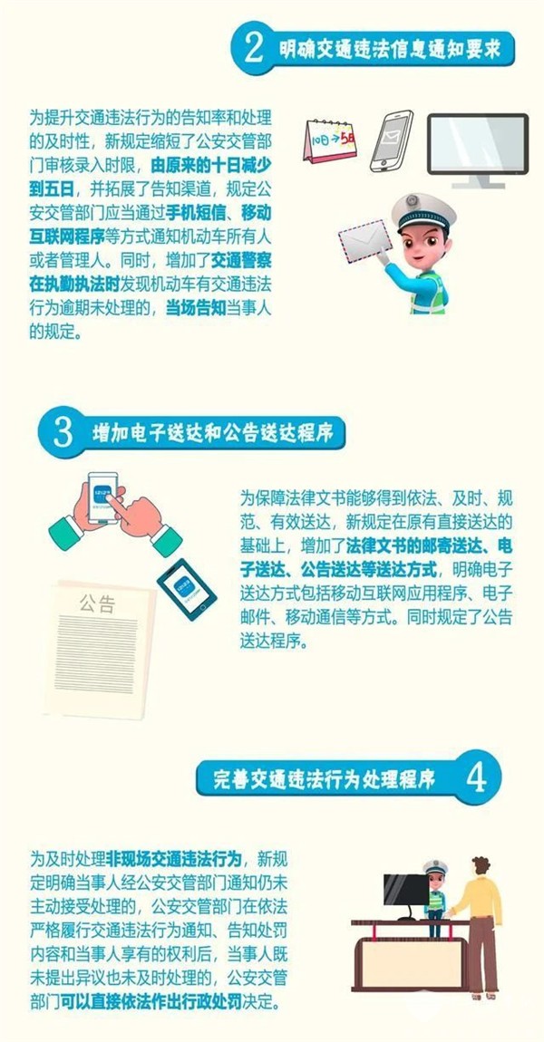 1、交通违法行为当事人可跨省异地处理非现场交通违法行为。这项措施将于5月1日起在湖南、广西、四川、贵州、云南试点,6月底将在全国全面实施。