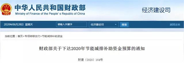 财政部关于下达2020年节能减排补助资金预算的通知